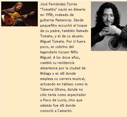 Tras la muerte de Camarón, Tomatito comenzó una fulgurante carrera como guitarrista en concierto, especialmente a partir de su participación en el I Festival Flamenco de Madrid, 4º Homenaje al Taranto, Madrid, Enero de 1993. Desde entonces ha actuado con su grupo y con gran éxito en los templos de más prestigio de la música culta, el Auditorio Nacional de Música de Madrid, Palau de la Música Catalana de Barcelona, Palau de la Música de Valencia, Palacio de Congresos de Granada, Universidad Complutense, Festival de la Guitarra de Córdoba, etc. Ha participado en numerosos Festivales Flamencos y distintos eventos musicales en toda España, bien acompañando a los cantaores de mayor prestigio, o preferentemente con su propio grupo en los locales para grandes públicos, como plazas de toros, polideportivos o salas de fiesta.